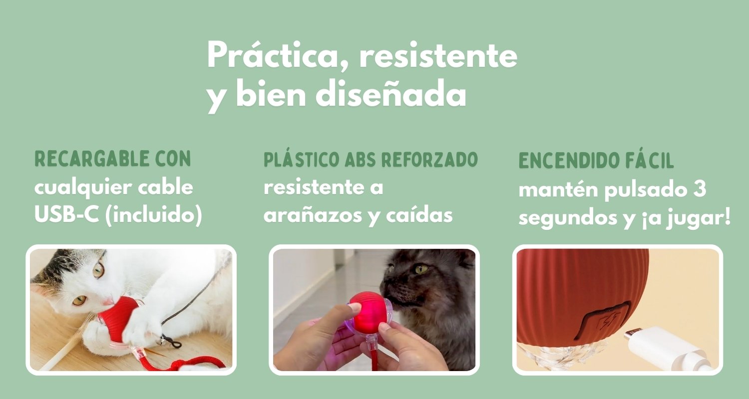 El juguete es diseñado para ser silencioso y no molestar a tu gato ni a tu hogar.